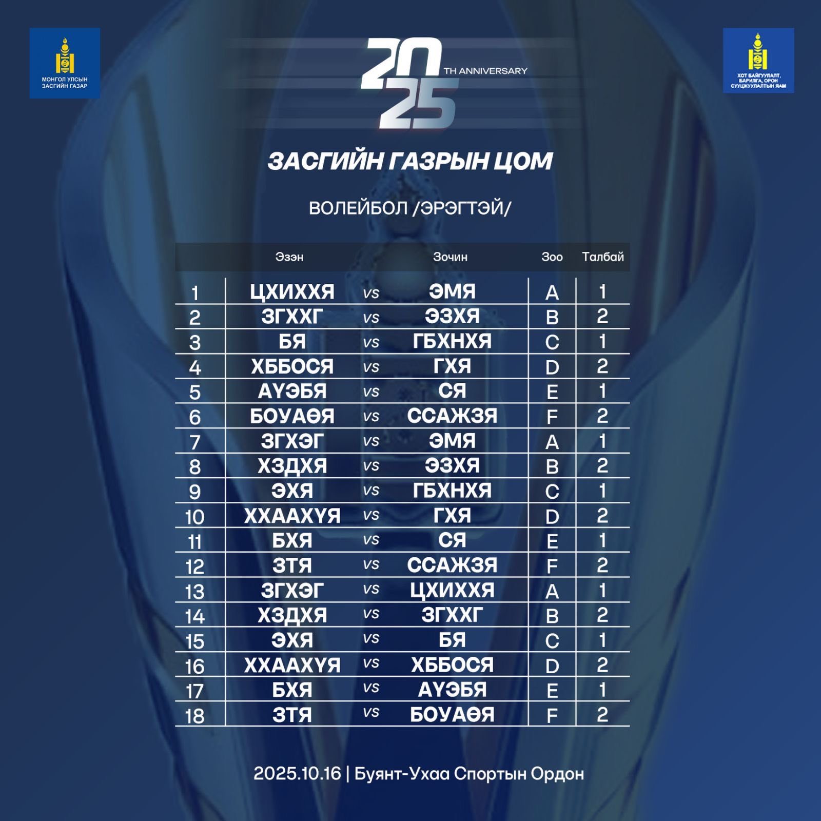 Засгийн газрын цом 2025 Гар бөмбөг /Эрэгтэй/